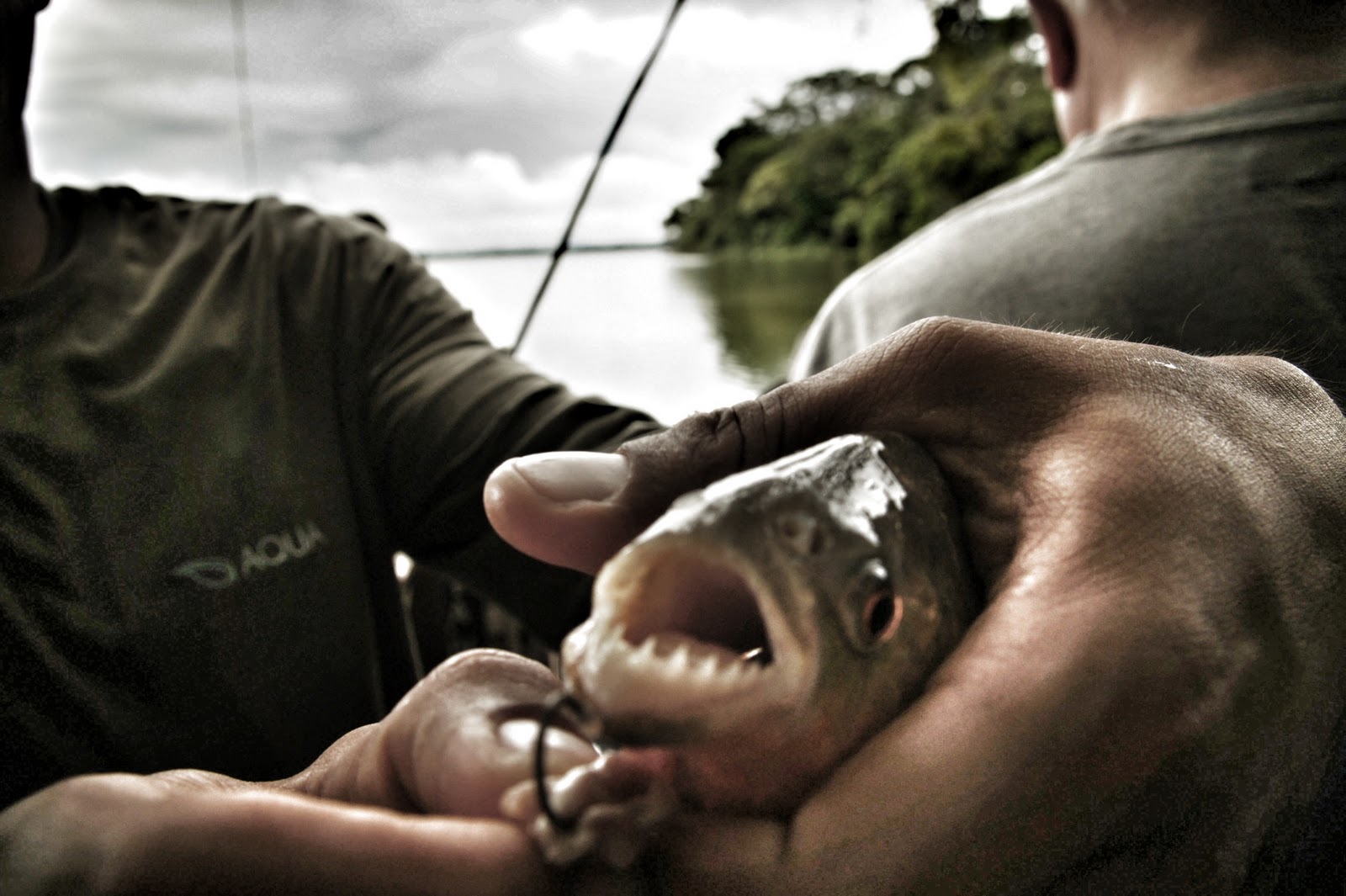 It wasn’t more than a few seconds when I felt the first hard bite. I soon got a feel for how the fish were hitting the bait, and before long I was flinging piranha’s into our boat, to the amazement of the other fishers and the guide.